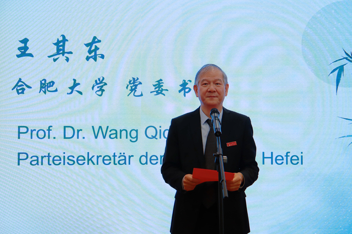 Im Namen der Universität hieß Wang Qidong Bürgermeisterin Katharina Pötter und ihre Delegation herzlich willkommen und gratulierte zum Erfolg des Hui-Kultur-Herbstcamps. Er sagte, dass eine tiefe Freundschaft durch den Austausch von chinesischen und deutschen Studierenden  entstanden sei, die eine solide Grundlage für ein neues Kapitel der Freundschaft zwischen den beiden Universitäten in der Zukunft bilde und der künftigen Entwicklung beider Seiten in den Bereichen Bildung, Wirtschaft und Kultur neue Impulse gebe. Herr Alexander Schmehmann, Präsident der Hochschule Osnabrück, zeigte sich in seiner Rede erfreut über die rasante Entwicklung Chinas und die der Hefei Universität und hoffte, dass ein weiterer Austausch in verschiedenen Formen die Freundschaft zwischen den beiden Universitäten, die Zusammenarbeit und Entwicklung vertiefen werde. Eine studentische Vertreterin der Fachhochschule Osnabrück in Deutschland berichtete von ihren Erfahrungen und Erkenntnissen während des Austauschs an der Universität Hefei und sagte, sie werde die schönen Erlebnisse nicht vergessen. Am Ende der Zeremonie überreichten Wang Qidong und Katharina Putt gemeinsam den Studierenden Abschlusszertifikate und Geschenke mit chinesischen Merkmalen.