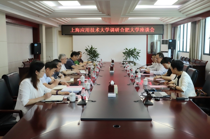 5月29日,上海应用技术大学党委书记郭庆松带队来校调研。学校在行政楼九楼东会议室召开座谈会,党委书记邬平川出席并主持会议,相关职能部门负责人参加会议。