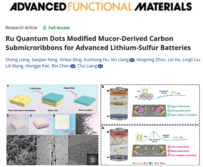 团队创新性地从中国传统美食毛豆腐中分离毛霉菌菌丝,并基于该菌丝合成碳亚微带,用于锂硫电池改性研究。该研究成果以“Ru Quantum Dots Modified Mucor-Derived Carbon Submicroribbons for Advanced Lithium-Sulfur Batteries”为题,发表在《Advanced Functional Materials》上(DOI: doi.org/10.1002/adfm.202420162)。梁升为第一作者,梁鑫为通讯作者,日韩欧美福利视频_黑人巨大人精品欧美三区_欧美成人另类人妖_欧美在线精品一区二区三区_欧美一区二区三区性视频_日韩精品欧美视频_性欧美极品xxxx欧美一区二区能源材料与化工学院为第一完成单位。