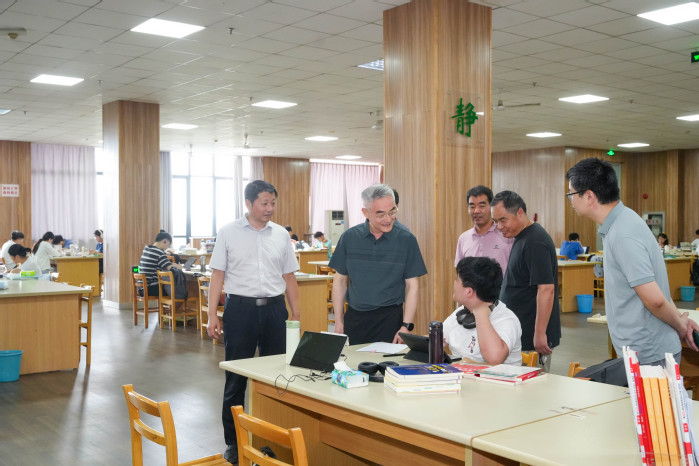 邬平川一行首先来到图书馆自习区域教学楼,与学生们亲切交谈,详细询问学习情况和对环境保障需求,关注考研学生的备考进展与实际困难,为学生鼓劲加油