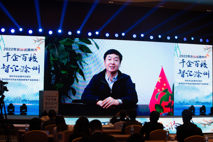 本次活动开始,滁州市委常委、市委秘书长、智能家电产业链链长杨甫祥,滁州经开区党工委书记、管委会主任、智能家电产业链副链长吴孝水分别致欢迎辞,介绍了本次招聘会的相关情况。滁州经开区投资合作促进局副局长马谢军作园区及智能家电产业链推介。我校和安徽大学作为特邀高校参与了活动。