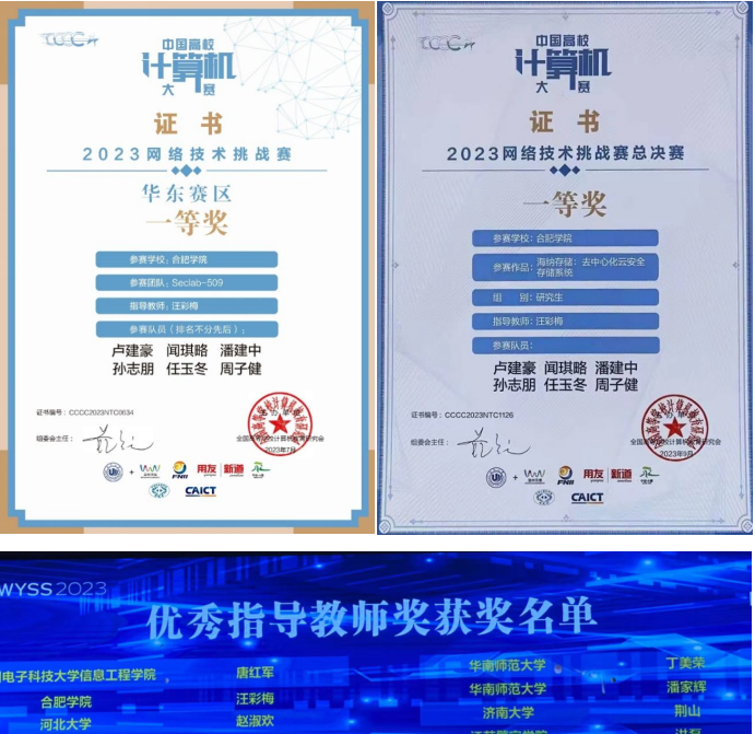 中国高校计算机大赛(China Collegiate Computing Contest,简称C4)网络技术挑战赛是由教育部高等学校计算机类专业教学指导委员会、教育部高等学校软件工程专业教学指导委员会、教育部高等学校大学计算机课程教学指导委员会、全国高等学校计算机教育研究会联合举办的国家级赛事。本次大赛吸引了来自390所院校的2430支队伍共11561名本科生与研究生报名参赛,历经前期资格赛和赛区选拔赛的激烈角逐,共有来自131所院校的268支队伍进入国家级决赛。比赛过程中,我校网络与信息安全团队精诚合作,坚持“高安全、国产化、攻坚卡脖子、顺应国家发展”核心理念,反复打磨参赛作品,围绕云安全存储系统,攻坚研发出两代系统,自主提出并设计了双向循环链式存储结构、基于DNA分子复制特性的双向数据获取机制等五大关键技术,解决了现有去中心化存储研究存在的存储空间需求大、能源损耗严重的问题,充分展现出合院学子勤学善思、奋勇拼搏、勇攀高峰的优秀精神风貌。