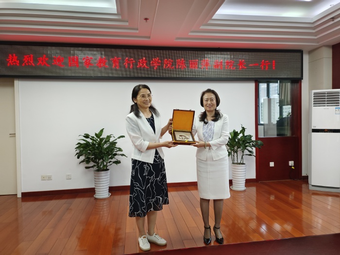 7月12日,国家教育行政学院副司级院领导陈丽萍一行来访我校,就两校开展国际化合作进行座谈交流。党委书记王其东、副校长陈秀出席座谈会。