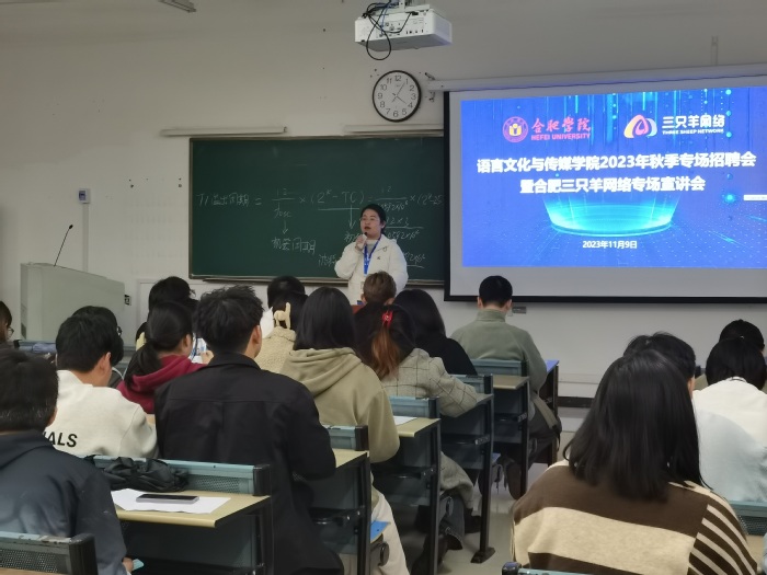 为使学生深入了解用人单位,促进校企合作,强化校友联系,学院组织合肥三只羊网络召开专场宣讲会。会上,招聘工作人员介绍了公司的企业文化、现有产业结构、组织框架等情况,对学生关注的福利待遇、人力资源政策等作了详细说明。宣讲会结束后,参会学生就岗位条件、晋升发展途径及薪资待遇等问题开展现场交流。