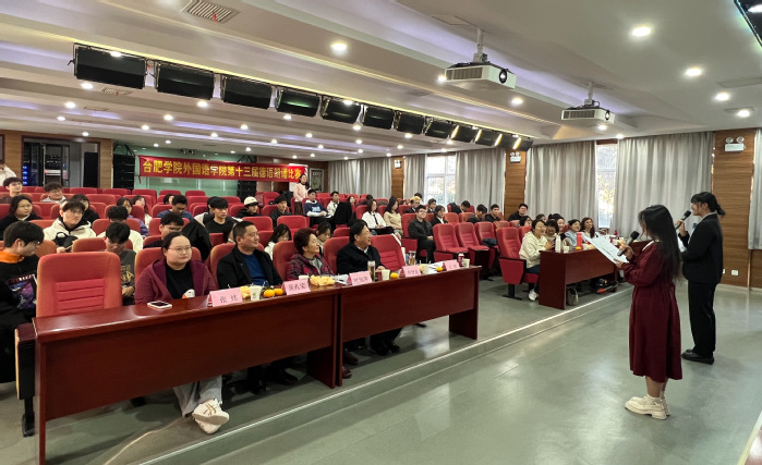 11月24日下午,合肥学院第十三届德语朗诵比赛在学校一期六栋报告厅举行。外国语学院党委书记吴孔宝、院长叶旭萍、安徽中德教育合作基金会秘书长何世昆、德语系主任张炜等参加。本次比赛由安徽中德教育合作基金会赞助,12名来自德语系、物流班、大陆班和信息与计算机科学班的学生同台竞技。外国语学院朱越、李菲菲、赵赫男、刘倩男四位老师担任评委。