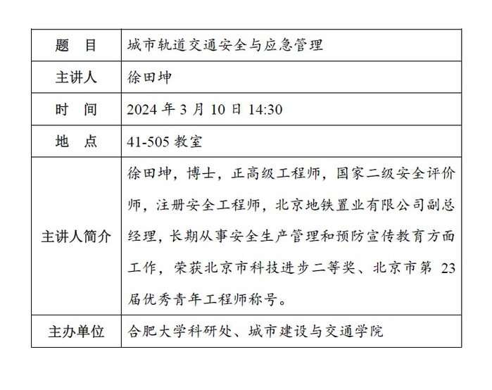 【善思讲坛】城市轨道交通安全与应急管理